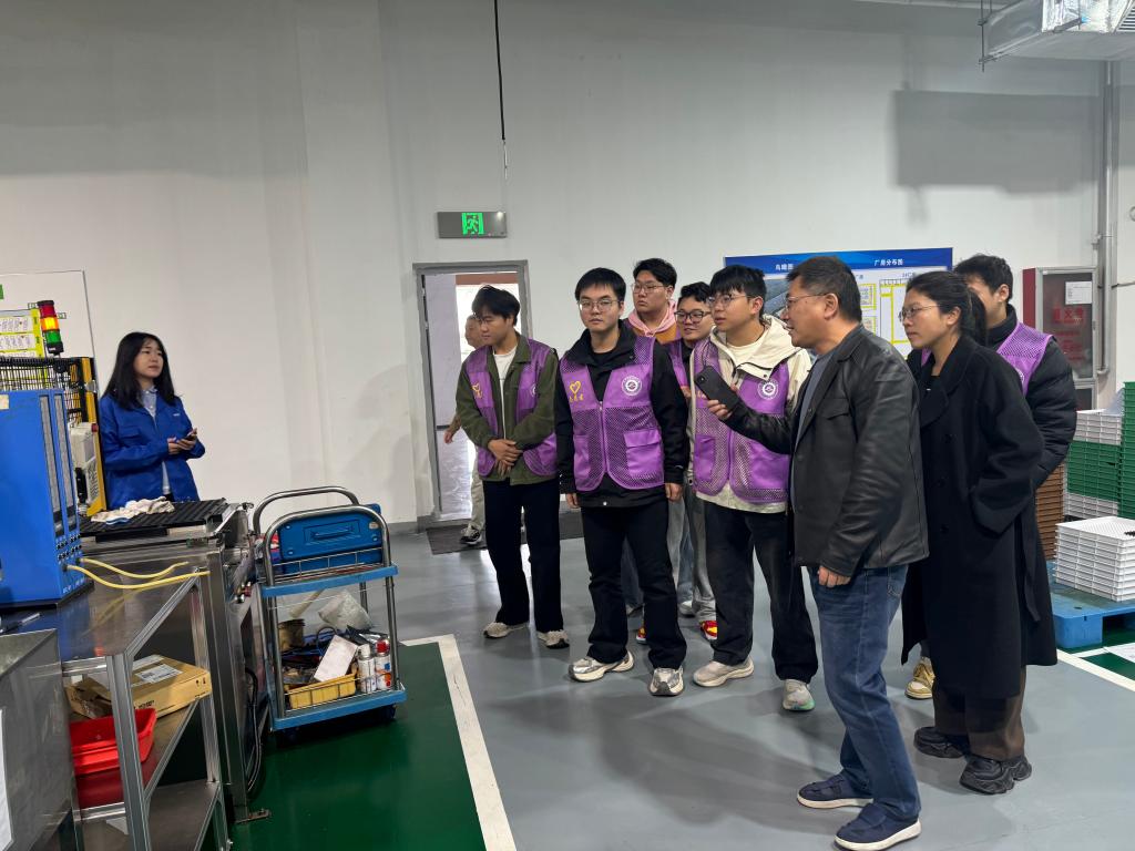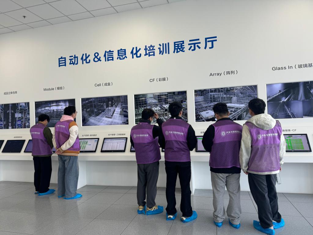 活动首站来到京东方,在企业技术专家的带领下,师生们先后参观了京东方产品展示中心及研发实验室,自动化生产线中机械臂的精准运作、智能传感系统的实时数据监测、数字化管理平台的高效调度,让同学们直观感受到 “工业 4.0” 时代智能制造的魅力。在产品展示区,柔性 OLED 屏、智慧车载显示系统等前沿产品吸引了大家的目光,技术专家结合产品原理、应用场景及行业趋势,详细讲解了显示技术在汽车电子、智能终端等领域的创新应用,与师生们就技术研发难点、行业人才需求等问题展开深入交流,为同学们的专业学习与职业规划提供了针对性指导。