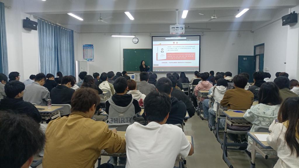 为推动《习近平谈治国理政》第五卷学习走深走实,引导青年学子与党员教师坚定理想信念、强化责任担当,10月29日中午,马克思主义学院熊圣言老师,在励学楼101教室为汽车与智能制造学院开展《习近平谈治国理政》第五卷专题宣讲。学院全体教师党员、入党积极分子及共青团员参加宣讲会。