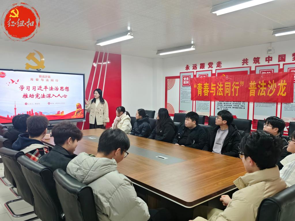 12月4日下午,汽车与智能制造学院在笃行楼五楼汽车与智能制造学院会议室开展第十一期“青春与法同行”普法沙龙活动,第十一期普法沙龙活动主题为“学习习近平法治思想,推动宪法深入人心”。活动由汽车与智能制造学院姚愔怡老师主讲,共20名同学参加。