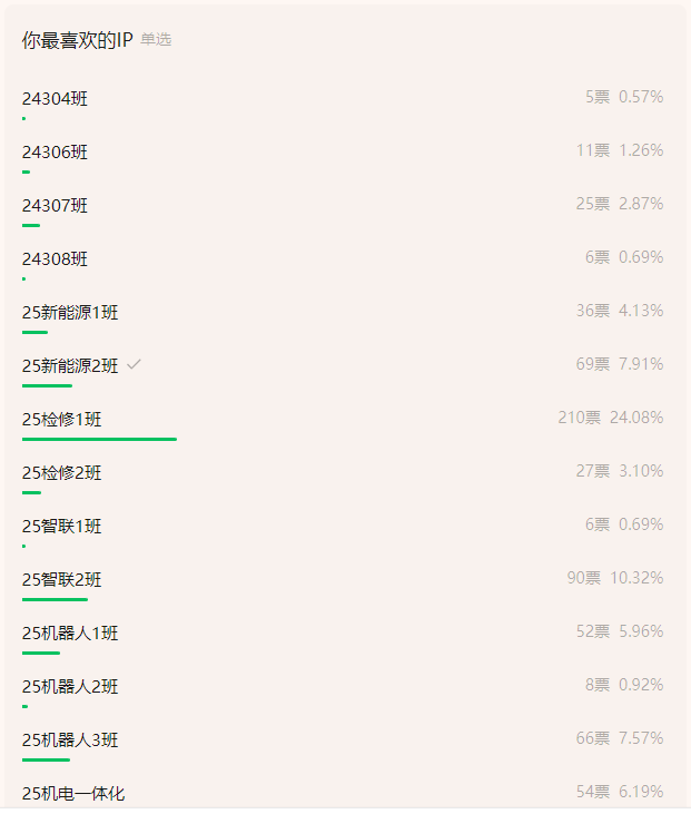 全院师生积极参与投票互动,为心仪的班级作品助力,投票页面浏览量节节攀升,线上氛围热烈。最终,25 汽车服务班凭借主题鲜明、设计精良的班级文化 IP 脱颖而出,斩获一等奖;25 检修 1 班的作品以独特的创意与深刻的内涵荣获二等奖;25 智联 2 班、25 新能源 2 班、25 机器人三班的作品各具特色,并列三等奖。