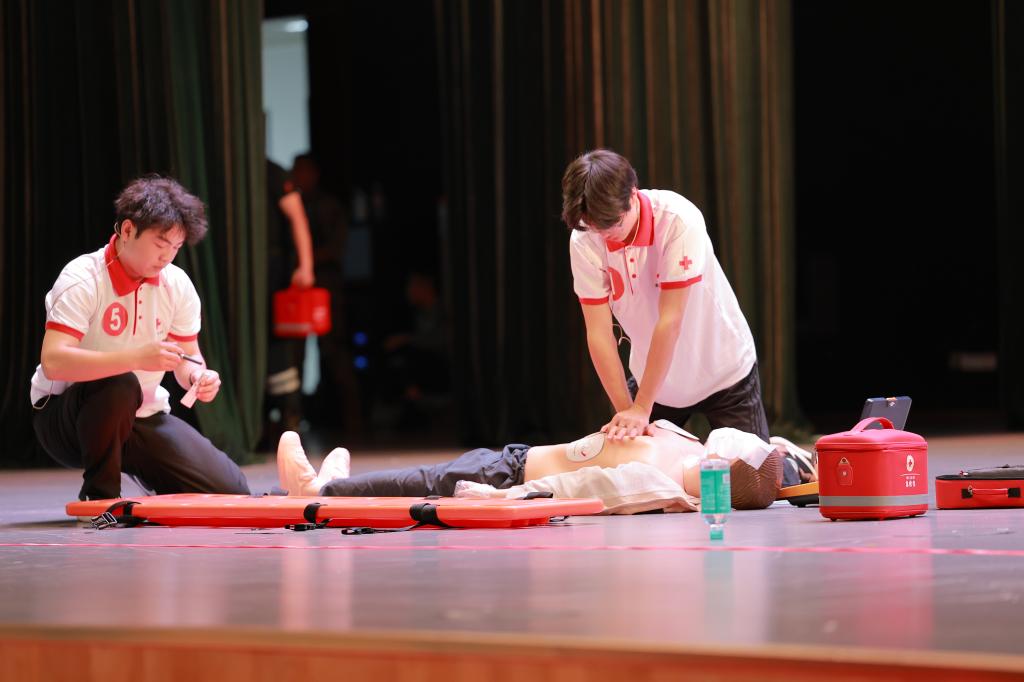 比赛现场,面对模拟的紧急场景,队员们沉着冷静、反应迅速:从判断生命体征到规范实施心肺复苏,从精准进行伤口止血包扎到科学处理意外伤害,每一个动作都严谨规范,每一次配合都高效流畅。他们不仅展现了过硬的急救技术,更传递出红十字人在危急时刻挺身而出、守护生命的责任与担当——这既是对日常培训成果的检验,更是对红十字“救急、救难、救危”宗旨的生动实践。