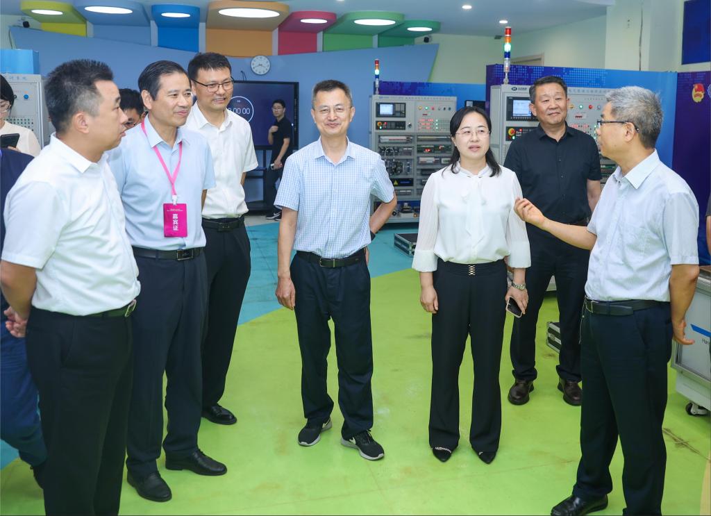开幕式结束后,与会领导深入细致地查看了我校机床装调维修工、数字化解决方案设计师两个赛项的准备情况。
